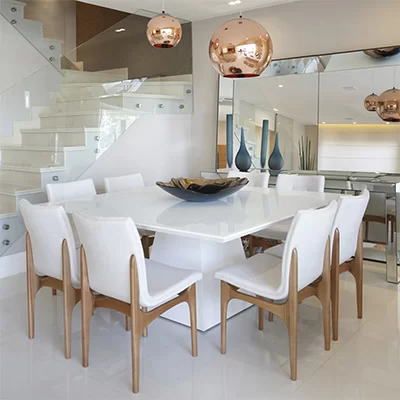 Leve em consideração as utilizações que ela teria no dia a dia, e não apenas em ocasiões especiais ou recepções esporádicas. Entretanto, no fim, a decisão é bastante pessoal e deve contemplar o seu gosto estético e como o restante do mobiliário e objetos farão a composição com a nova mesa.