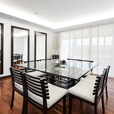 Alguns aspectos físicos do ambiente devem ser considerados antes de escolher o formato de sua mesa. Por exemplo, mesas retangulares se ajustam melhor a salas retangulares; assim como mesas redondas ou quadradas acomodam-se melhor às salas quadradas. Além disso, é preciso considerar a passagem e o espaço para circulação de pessoas. Uma dica interessante é que mesas redondas se adequam melhor a ambientes pequenos, principalmente pelo fato de não possuírem quinas.