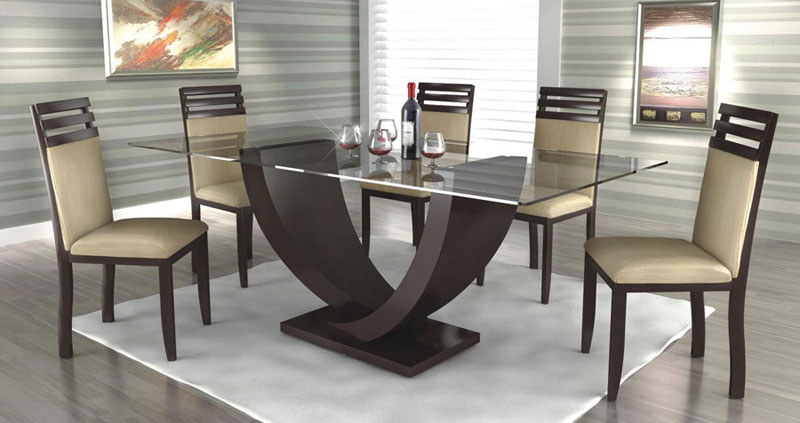 Ao decorar a sala de jantar, experimente utilizar uma mesa com tampo de vidro para deixar a sala luxuosa!