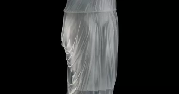 Trata-se de uma escultura de vestido de vidro assinada por Karen La Monte.