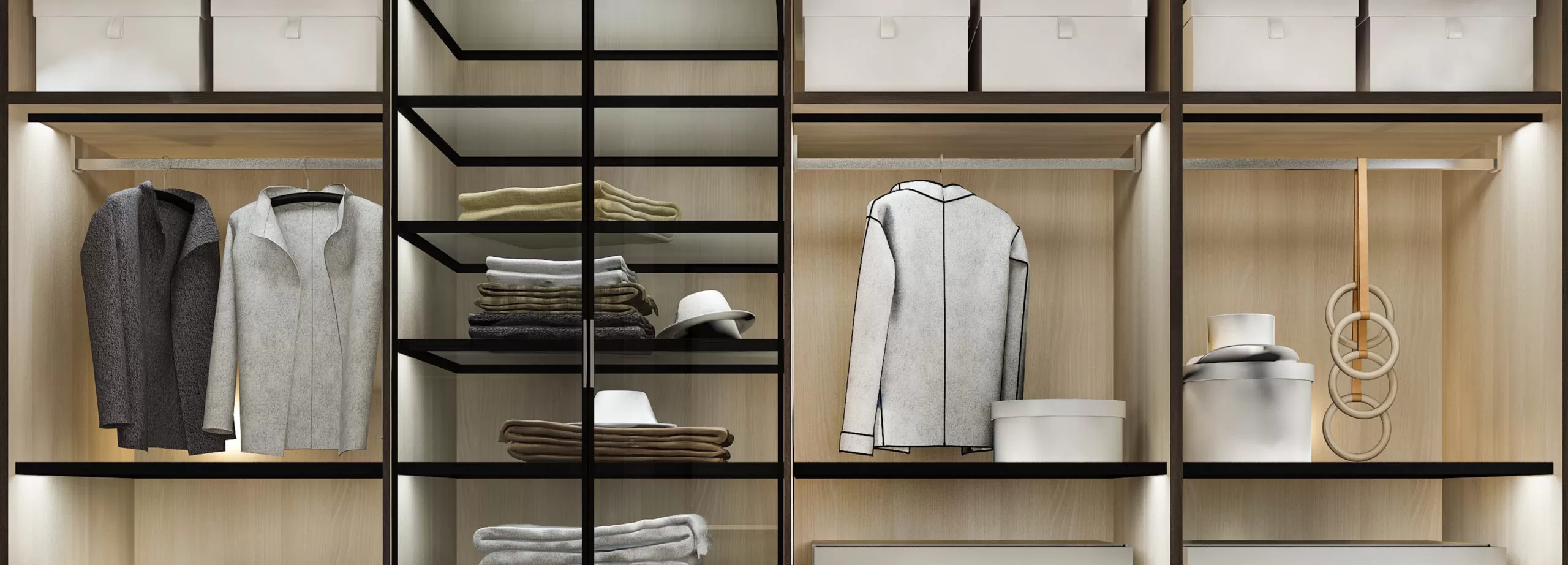 Vidro extra-clear: proporciona transparência máxima, valorizando roupas e acessórios no closet.